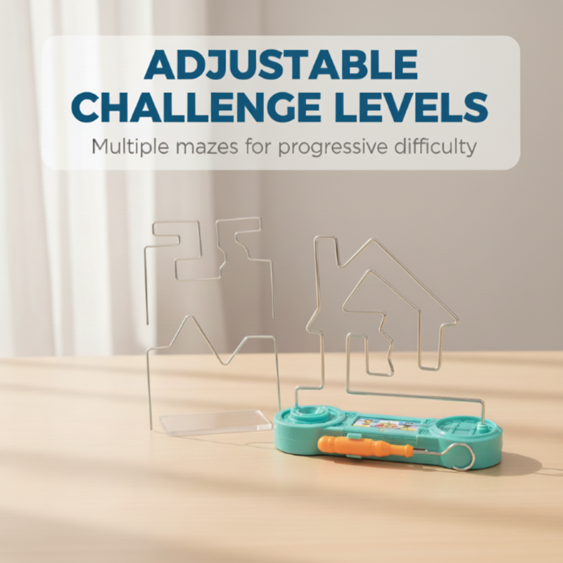 Trening koordynacji wzrokowo-ruchowej — poprzez zachęcanie graczy do ostrożnego poruszania się po labiryncie z drutu, aktywność ta poprawia zdolności motoryczne i koncentrację poprzez angażującą interakcję. Kształci cierpliwość i precyzję, jednocześnie wspierając rozwój poznawczy.