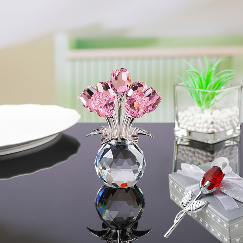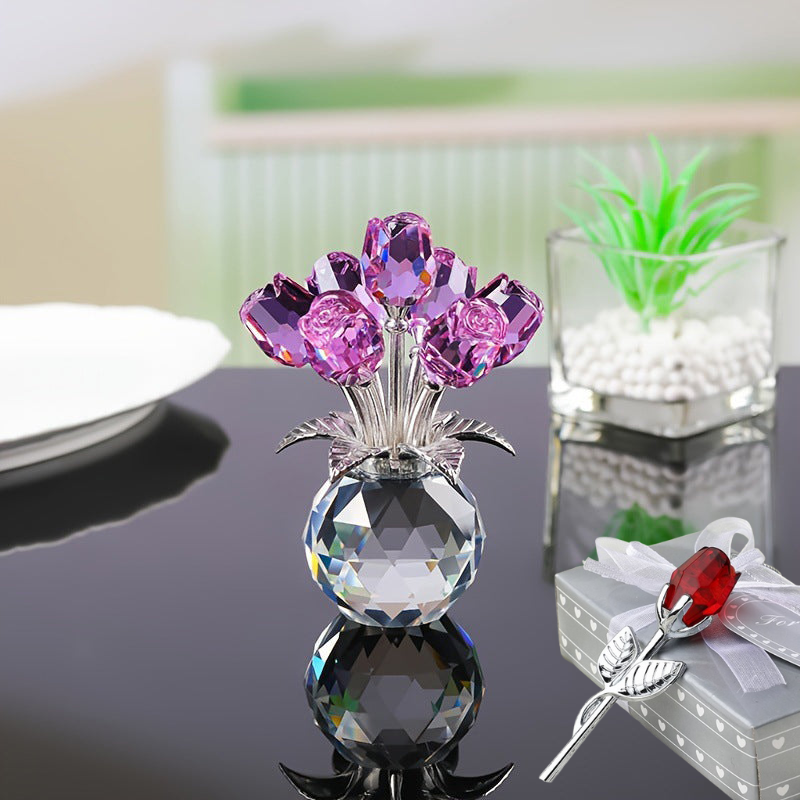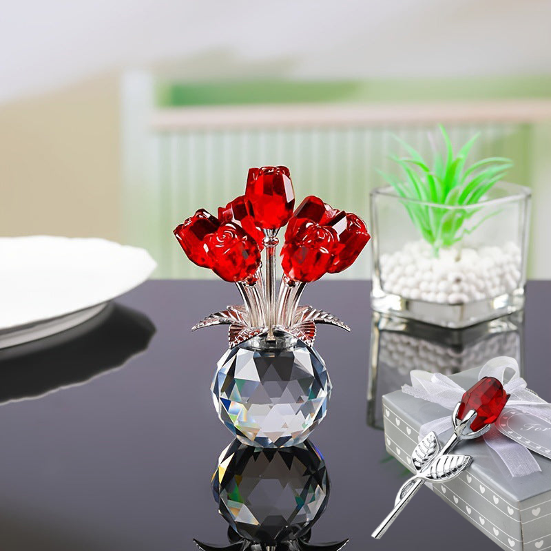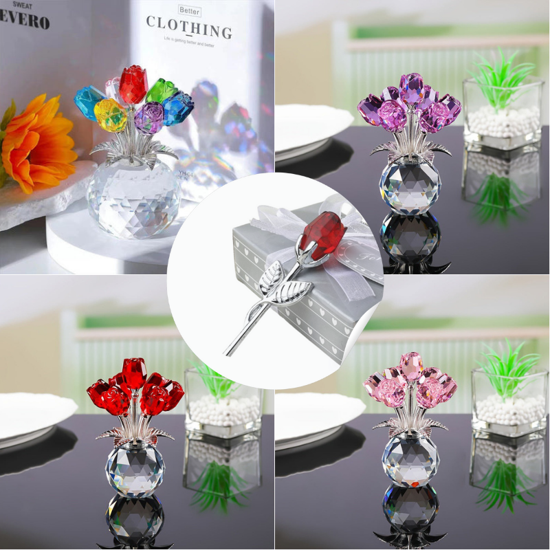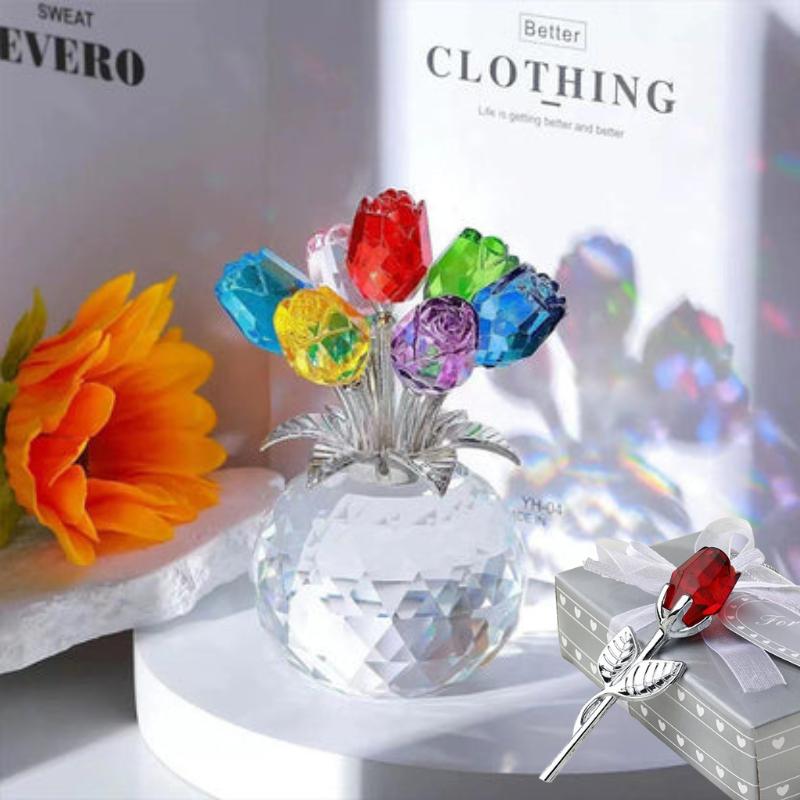 Wieczna kryształowa figurka róży w wazonie