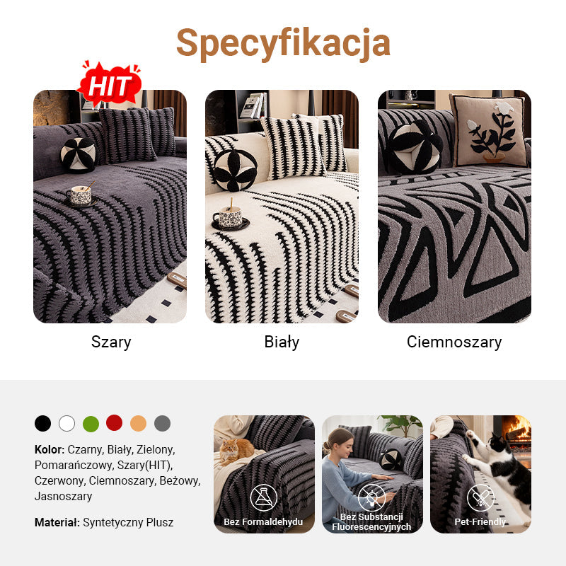 🛋️Miękka, antypoślizgowa narzuta na kanapę z pluszu